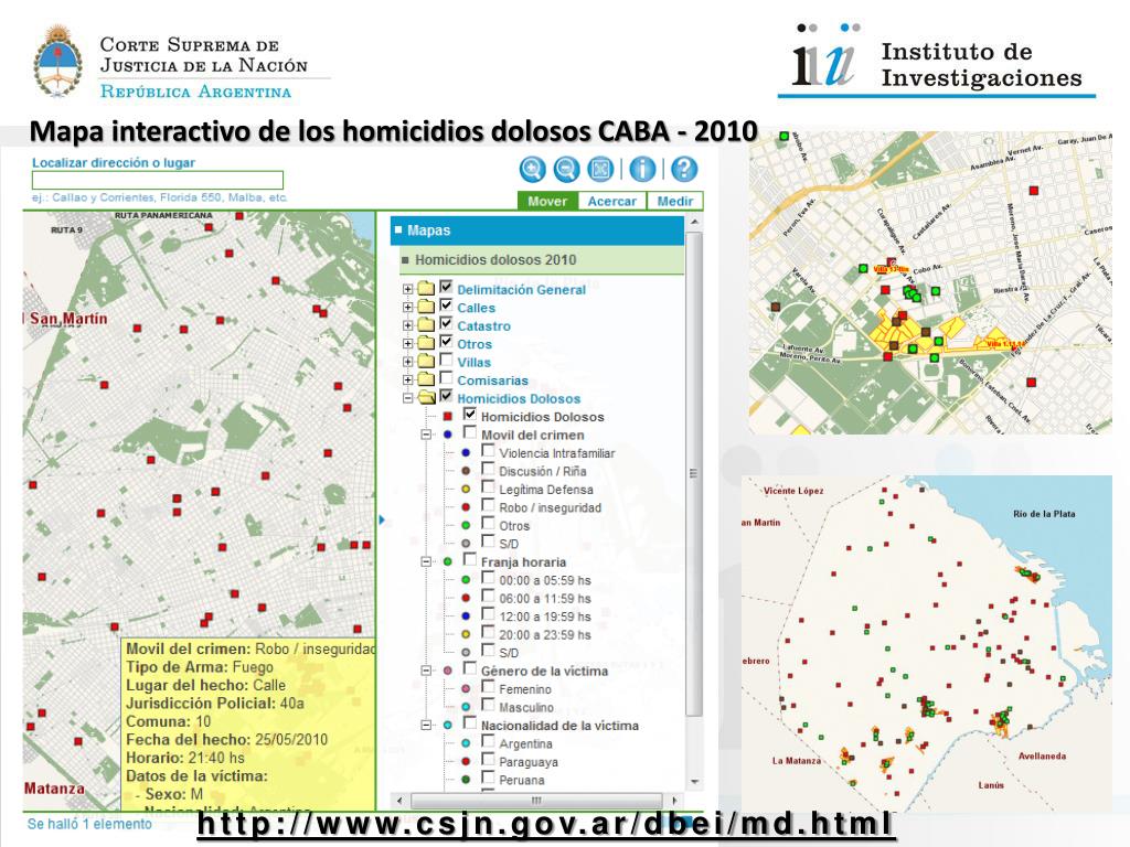 Mapa interactivo de los homicidios dolosos CABA - 2010 http://www.csjn.gov.ar/dbei/md.html