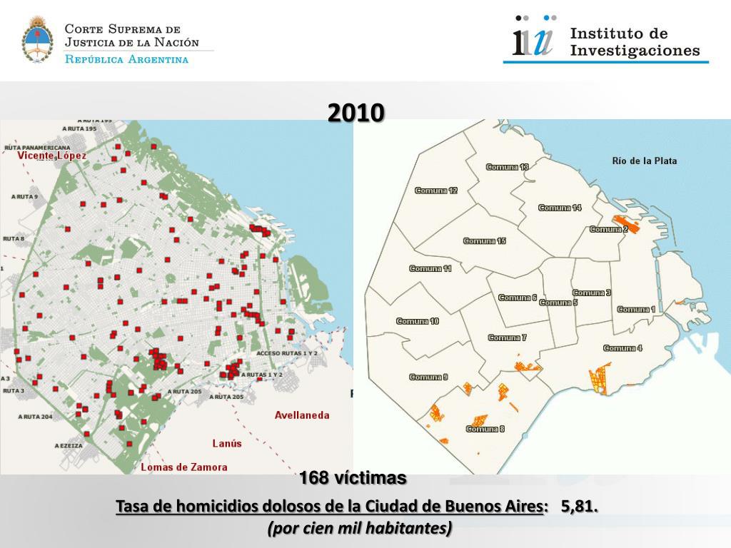 2010 168 víctimas Tasa de homicidios dolosos de la Ciudad de Buenos Aires: 5,81. (por cien mil habitantes)