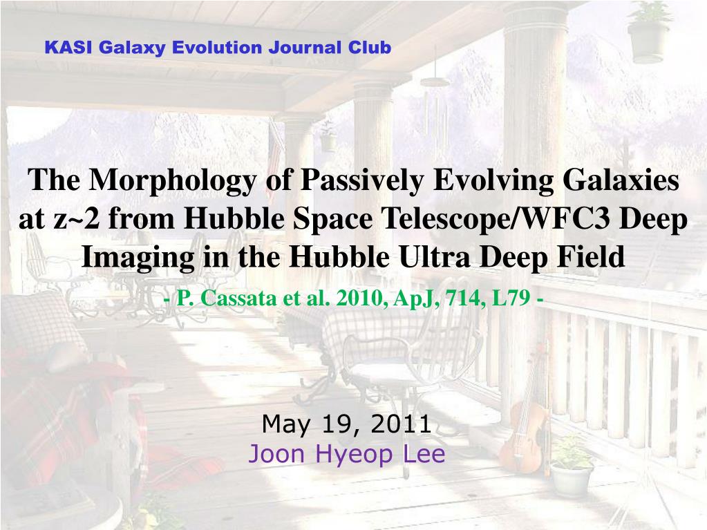 KASI Galaxy Evolution Journal Club. The Morphology of Passively Evolving Galaxies at z~2 from Hubble Space Telescope/WFC3 Deep Imaging in the Hubble Ultra Deep Field - P. Cassata et al. 2010, ApJ, 714, L79 -. May 19 , 2011 Joon Hyeop Lee.