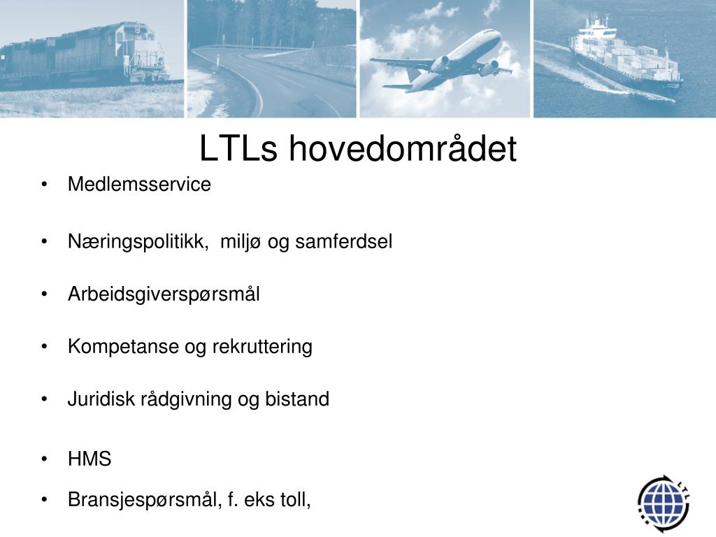 LTLs hovedområdet • Medlemsservice • Næringspolitikk, miljø og samferdsel • Arbeidsgiverspørsmål • Kompetanse og rekruttering • Juridisk rådgivning og bistand • HMS • Bransjespørsmål, f. eks toll,