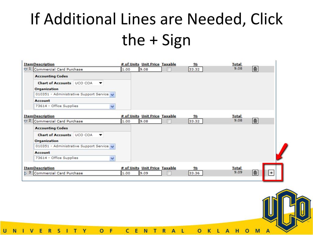 Type in the Number of Orgs or Number of Expense Codes you Need in the Enter # of Lines Box • Click Add