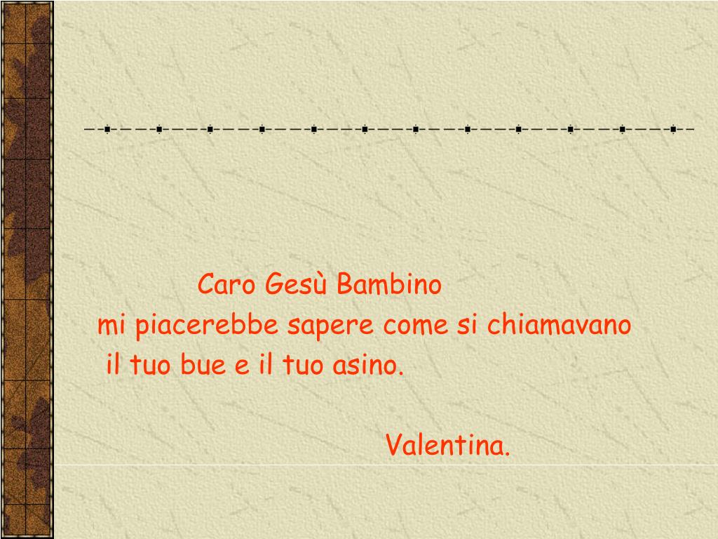 Caro Gesù Bambino mi piacerebbe sapere come si chiamavano il tuo bue e il tuo asino. Valentina.