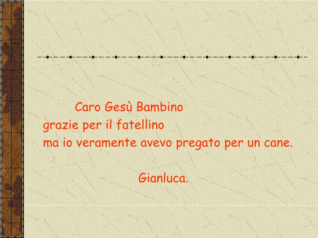Caro Gesù Bambino grazie per il fatellino ma io veramente avevo pregato per un cane. Gianluca.