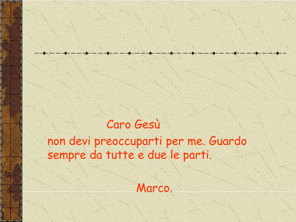 Caro Gesù non devi preoccuparti per me. Guardo sempre da tutte e due le parti. Marco.