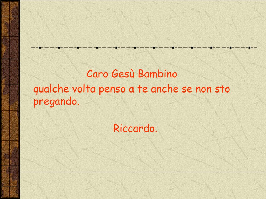 Caro Gesù Bambino qualche volta penso a te anche se non sto pregando. Riccardo.