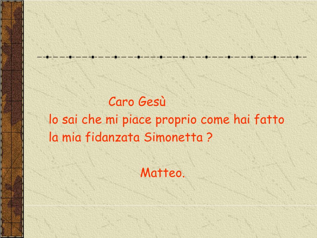 Caro Gesù lo sai che mi piace proprio come hai fatto la mia fidanzata Simonetta ? Matteo.