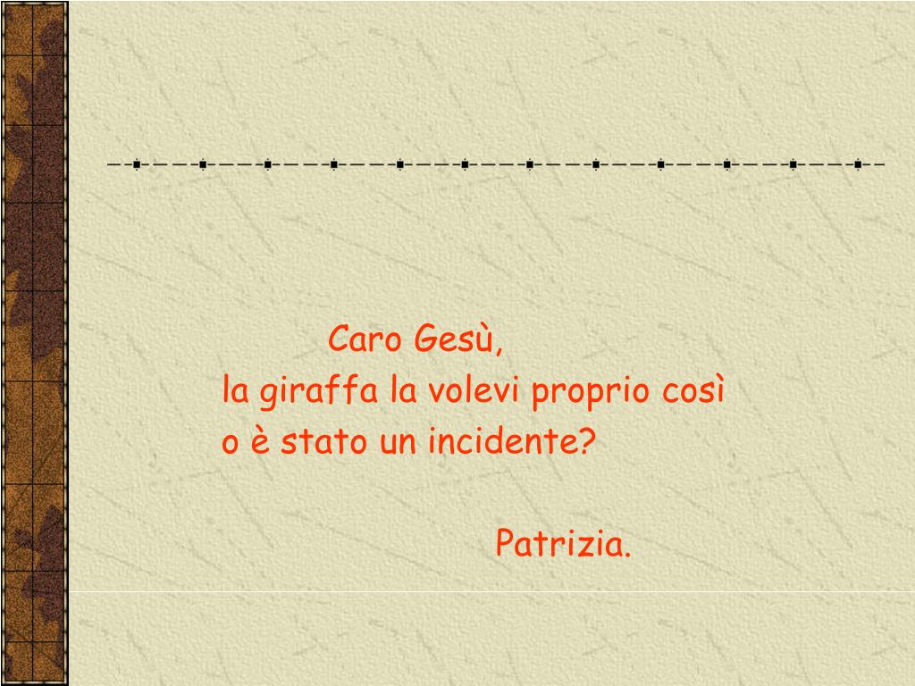 Caro Gesù, la giraffa la volevi proprio così o è stato un incidente? Patrizia.