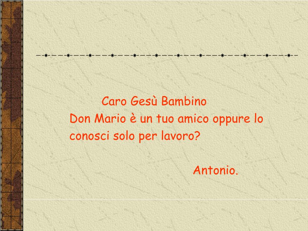 Caro Gesù Bambino Don Mario è un tuo amico oppure lo conosci solo per lavoro? Antonio.