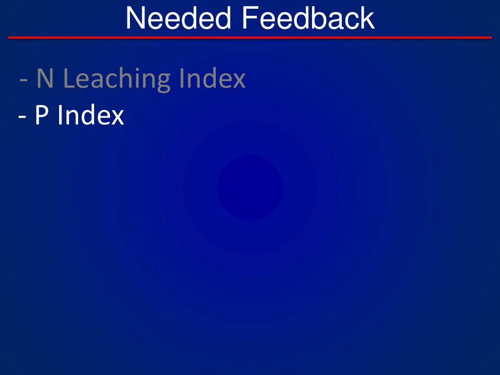 Needed Feedback - N Leaching Index - P Index - Soil and Manure/Litter Testing