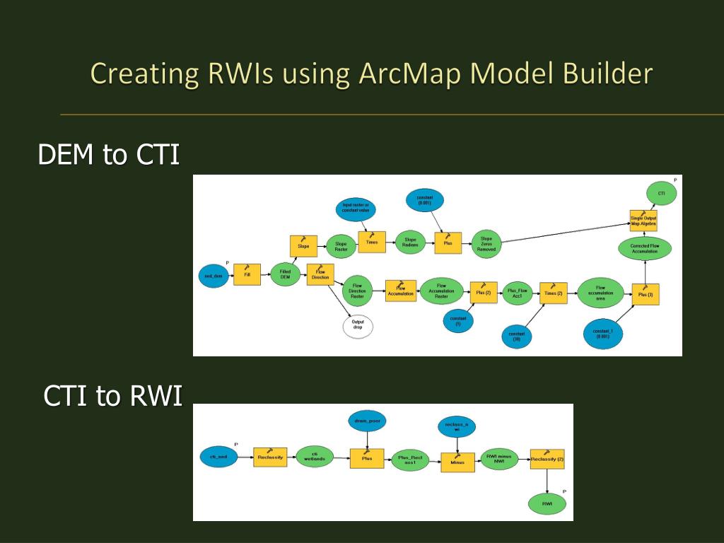 Creating RWIs using ArcMap Model Builder DEM to CTI CTI to RWI