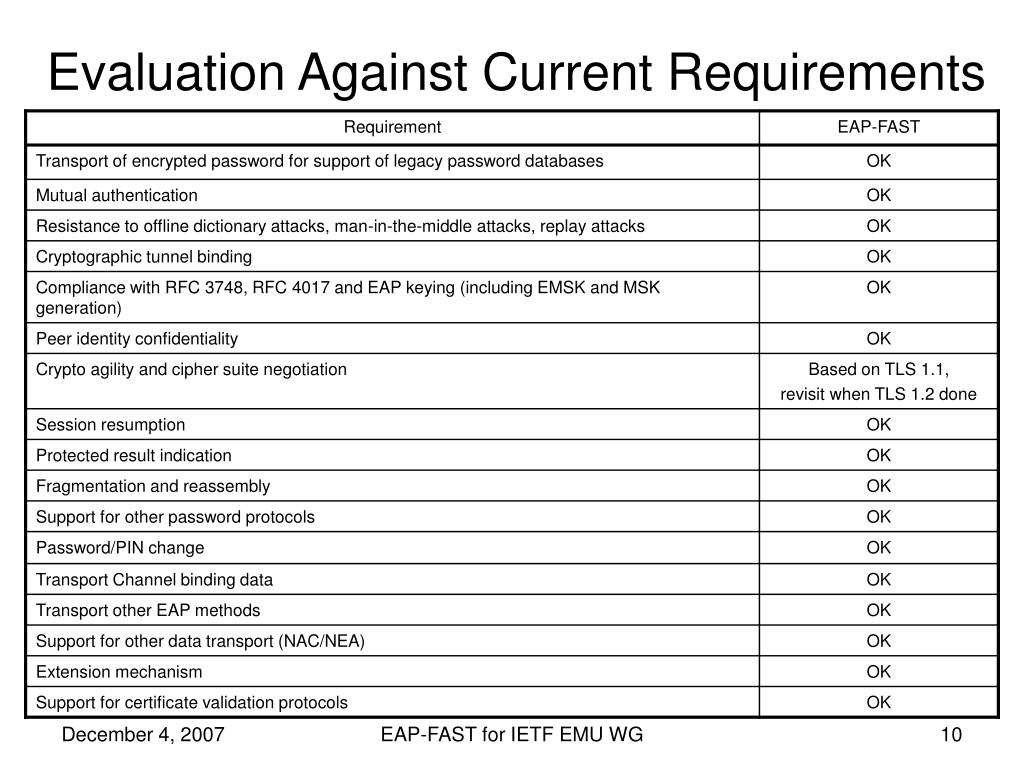 Evaluation Against Current Requirements EAP-FAST for IETF EMU WG