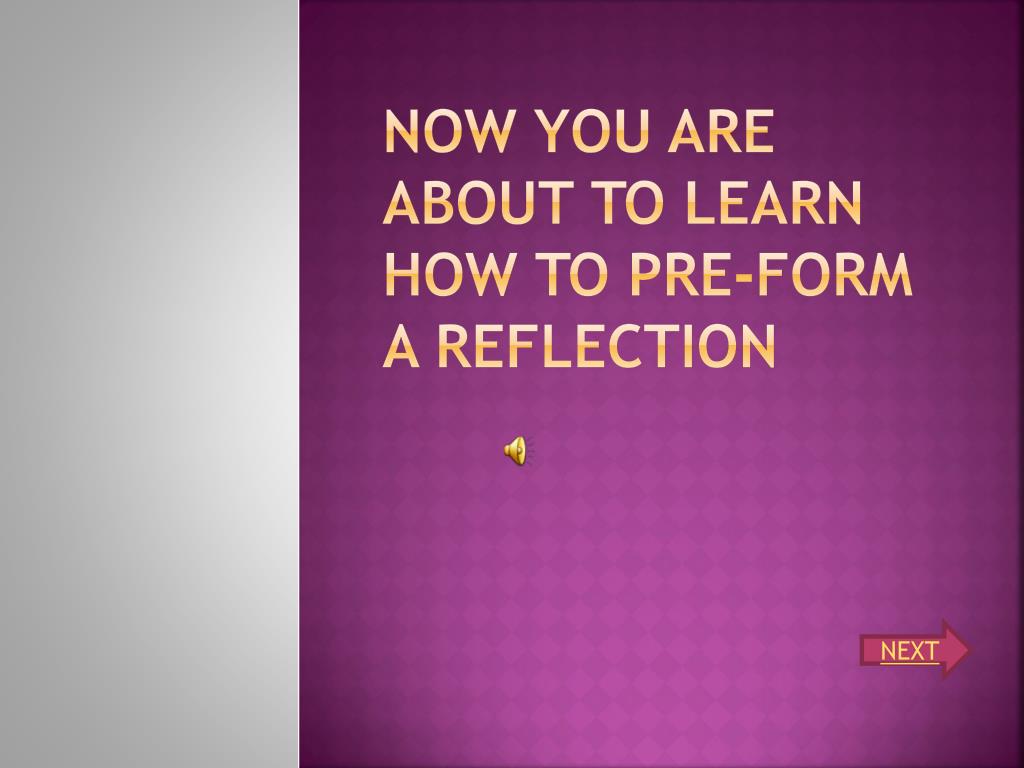 Now you are about to learn HOW TO PRE-FORM A reflection NEXT