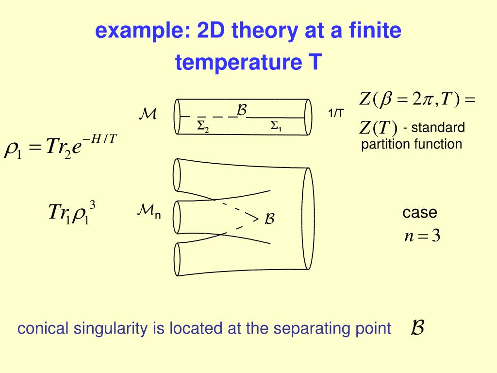 example: 2D theory at a finite temperature T - standard partition function case conical singularity is located at the separating point