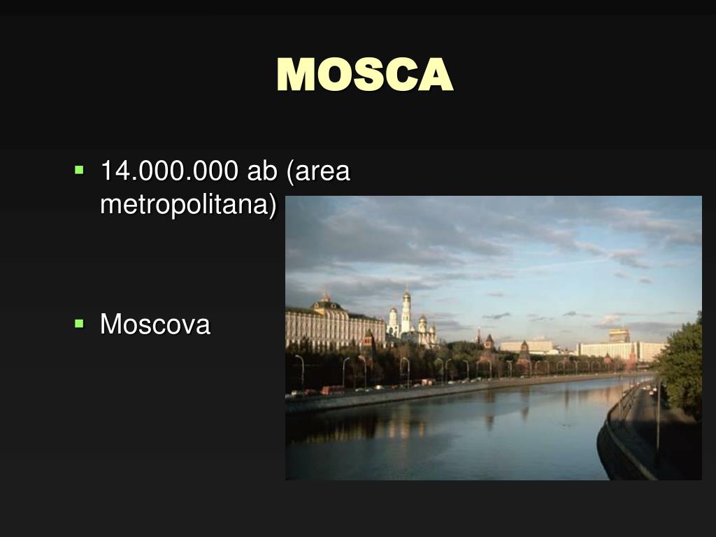 Città principali • MOSCA (14 milioni di ab nell’area metropolitana) • SAN PIETROBURGO (5 milioni) • VLADIVOSTOK (città più orientale, capolinea della Transiberiana)