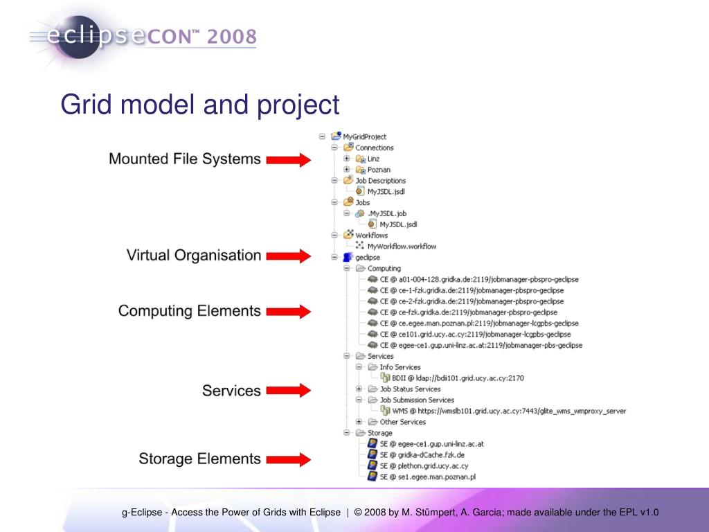 Current project status • g-Eclipse is an official Eclipse Technology Project • First release (0.5) available since September 2007 • Currently working in 1.0 milestone phase (M3 available) • Final 1.0 release planned for October 2008 • Architecture and Grid model stable since mid of 2007 • First middleware implementation stable since end of 2007 • Second middleware implementation started in the beginning of 2008