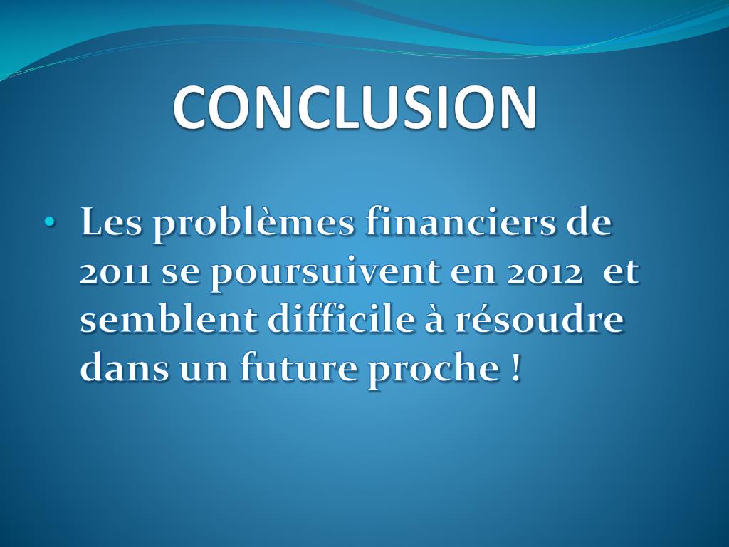 CONCLUSION Les problèmes financiers de 2011 se poursuivent en 2012 et semblent difficile à résoudre dans un future proche !