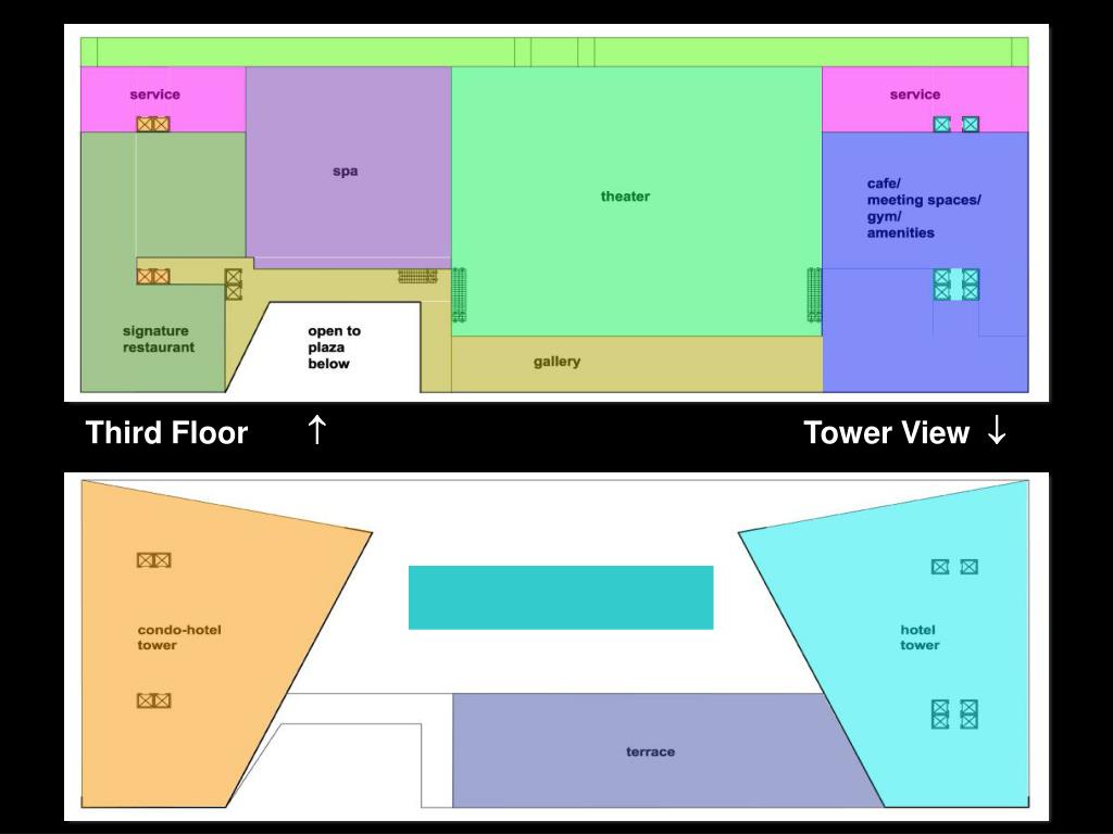 Development Program Highlights: • 9 story hotel tower: 266 rooms • 223 rooms at 300 s.f. and 43 rooms at 520 s.f. • 9 story condo-hotel tower: 112 units • 83 units at 750 s.f. and 29 units at 925 s.f. • 30,000 s.f. Cirque theatre: 1,200 seats • 43,296 s.f. of luxury retail • 9,500 s.f. signature Nobu restaurant • 10,000 s.f. spa • 227,700 gross s.f. of parking on 4 levels • 465 total stalls @ 475 s.f. per stall • Total Development Program (excluding parking) • 380,000 gross square feet