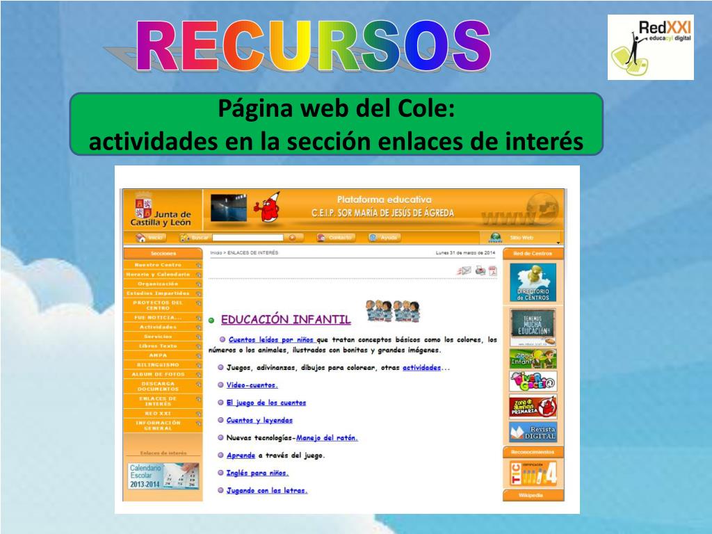 RECURSOS Página web del Cole: actividades en la sección enlaces de interés