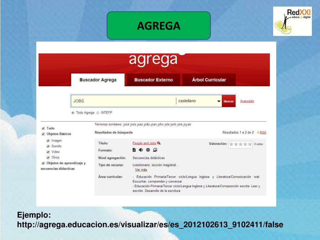 AGREGA Ejemplo: http://agrega.educacion.es/visualizar/es/es_2012102613_9102411/false