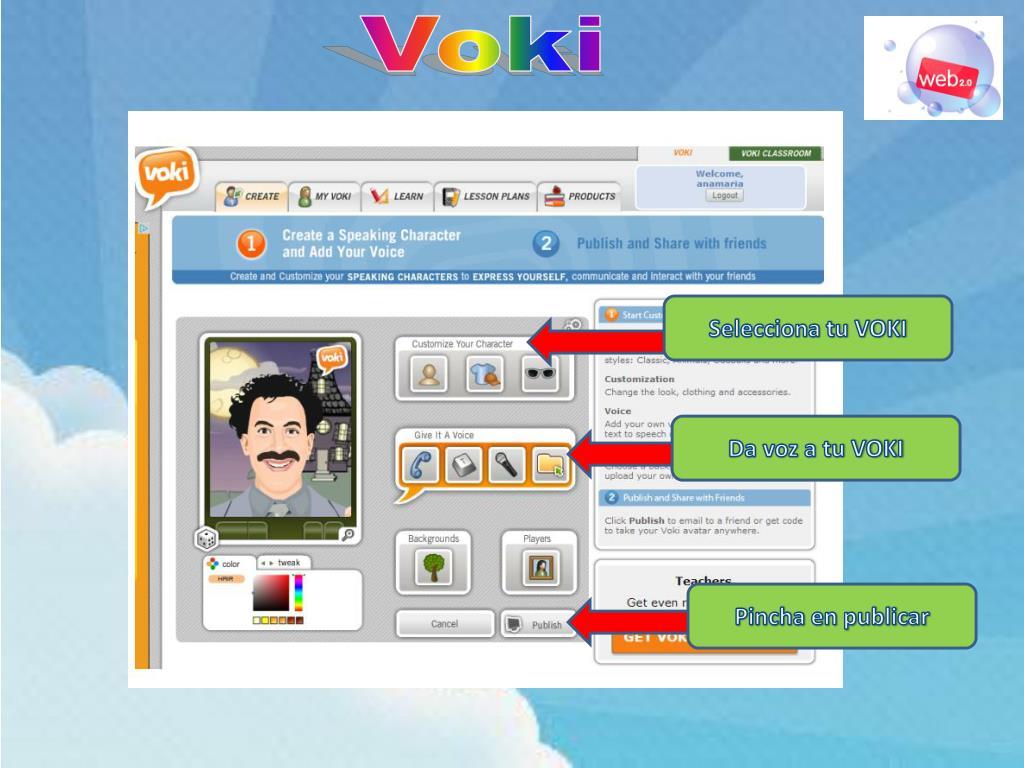 Voki Selecciona tu VOKI Da voz a tu VOKI Pincha en publicar