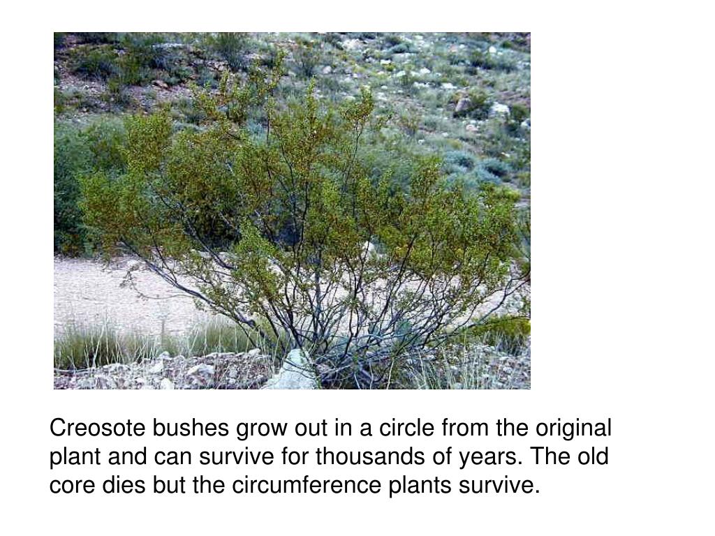 Creosote bushes grow out in a circle from the original plant and can survive for thousands of years. The old core dies but the circumference plants survive.
