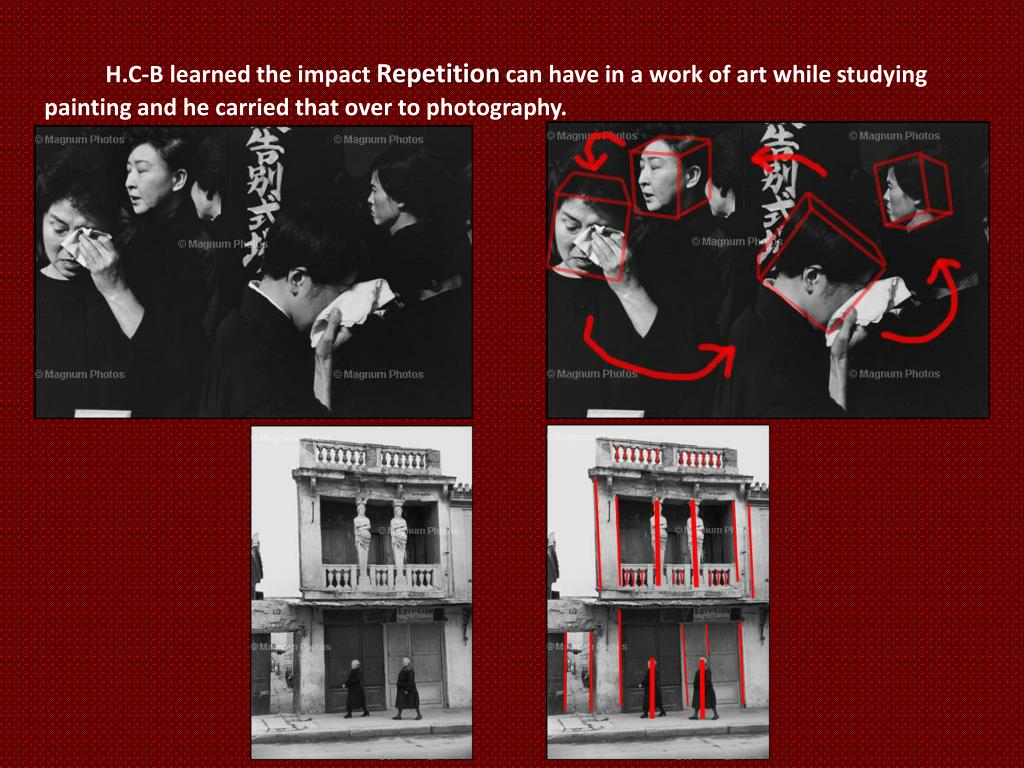 H.C-B learned the impact Repetition can have in a work of art while studying painting and he carried that over to photography.