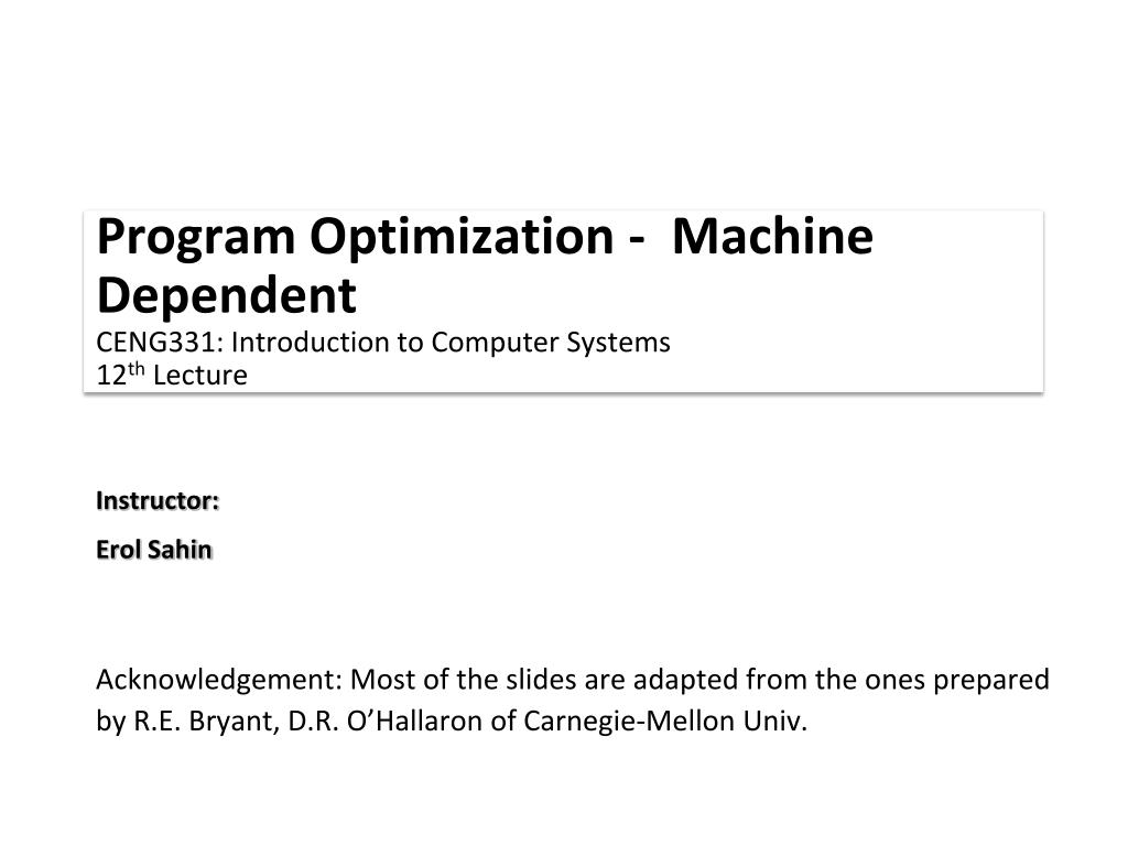 Program Optimization - Machine DependentCENG331: Introduction to Computer Systems12th Lecture Instructor: ErolSahin • Acknowledgement: Most of the slides are adapted from the ones prepared • by R.E. Bryant, D.R. O’Hallaron of Carnegie-Mellon Univ.