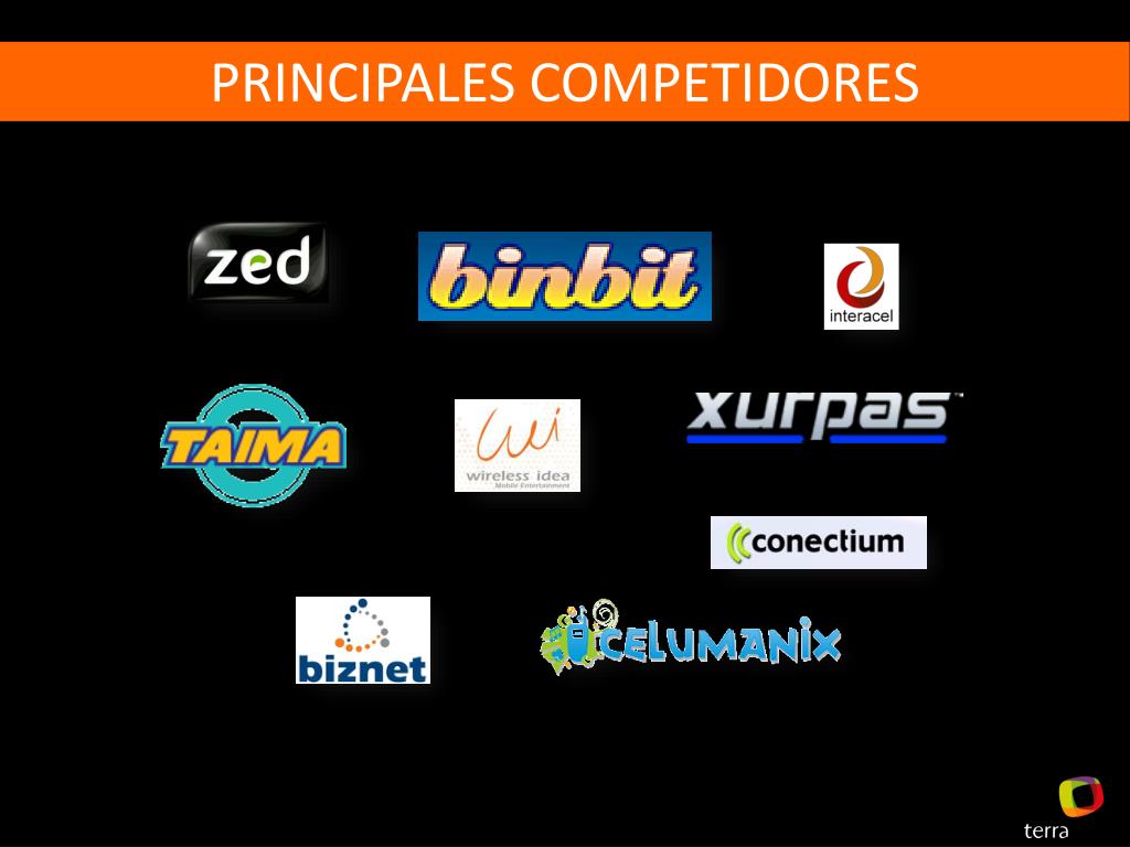MERCADO MOVIL Población Total: Tamaño del Mercado 36.600 millones de personas33.811 millones de usuarios Penetración Promedio de Móviles: 118% • Market Share: 20.64% • Usuarios: 6.709 millones • Arpu Promedio • CAM: USD 10.44 • Market Share: 31.18% • Usuarios: 9.328 millones • Arpu Promedio • CAM: USD 11.23 • Market Share: 30.35% • Usuarios: 9.080 millones • Arpu Promedio • CAM: USD 8.12 • Market Share: 9.89% • Usuarios: 2.960 millones • Arpu Promedio • CAM: USD 10.27 • Market Share: 7.93% • Usuarios: 2.371millones • Arpu Promedio: USD 13.11 • Usuarios: 3.363 millones • Arpu Promedio: USD 16.69