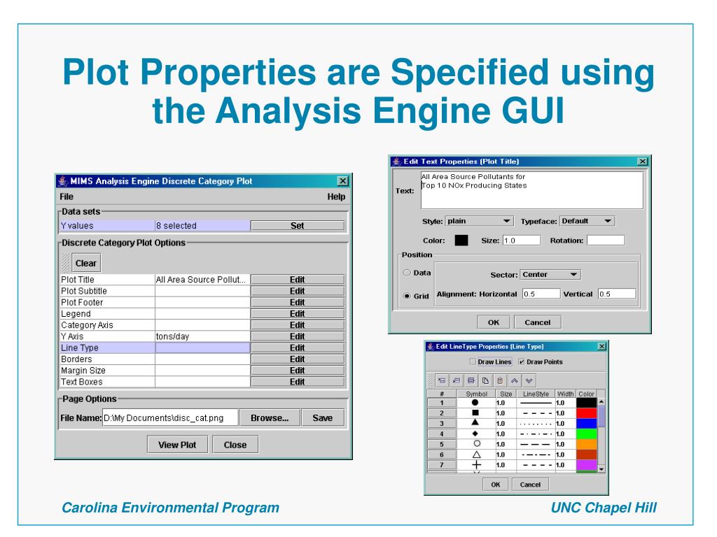 Plot Properties are Specified using the Analysis Engine GUI Carolina Environmental Program UNC Chapel Hill