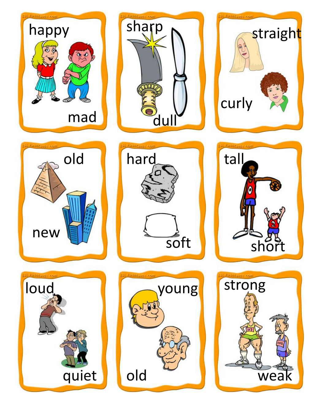 sharp happy straight curly mad dull old hard tall new soft short strong loud young quiet old weak