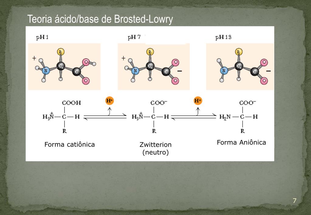 Teoriaácido/base de Brosted-Lowry Forma Aniônica Forma catiônica Zwitterion (neutro)