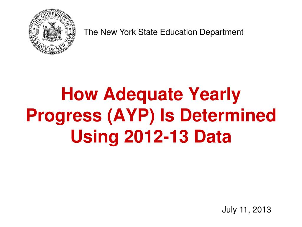 The New York State Education Department. How Adequate Yearly Progress (AYP) Is Determined Using 2012-13 Data. July 11, 2013. Accountability Measures.