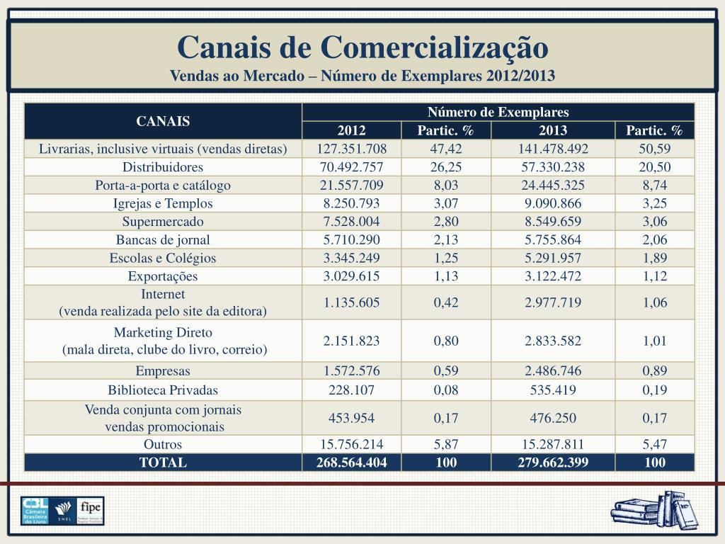 Canais de Comercialização Vendas ao Mercado – Número de Exemplares 2012/2013