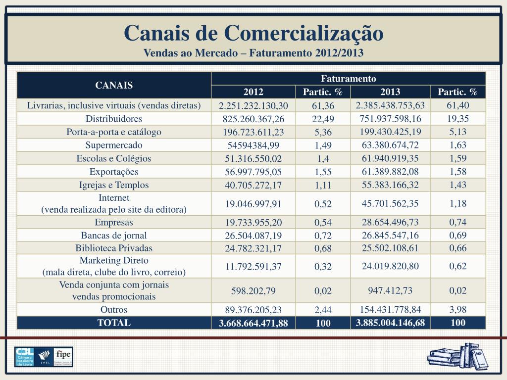 Canais de Comercialização Vendas ao Mercado – Faturamento 2012/2013