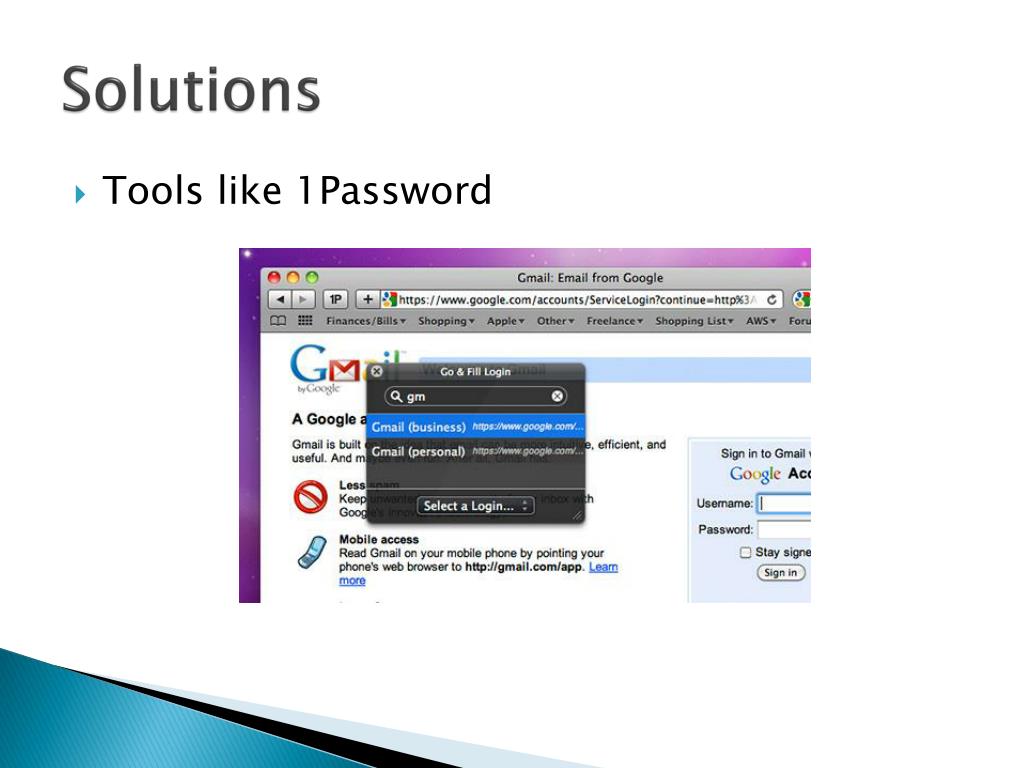 Solutions • Tools like 1Password