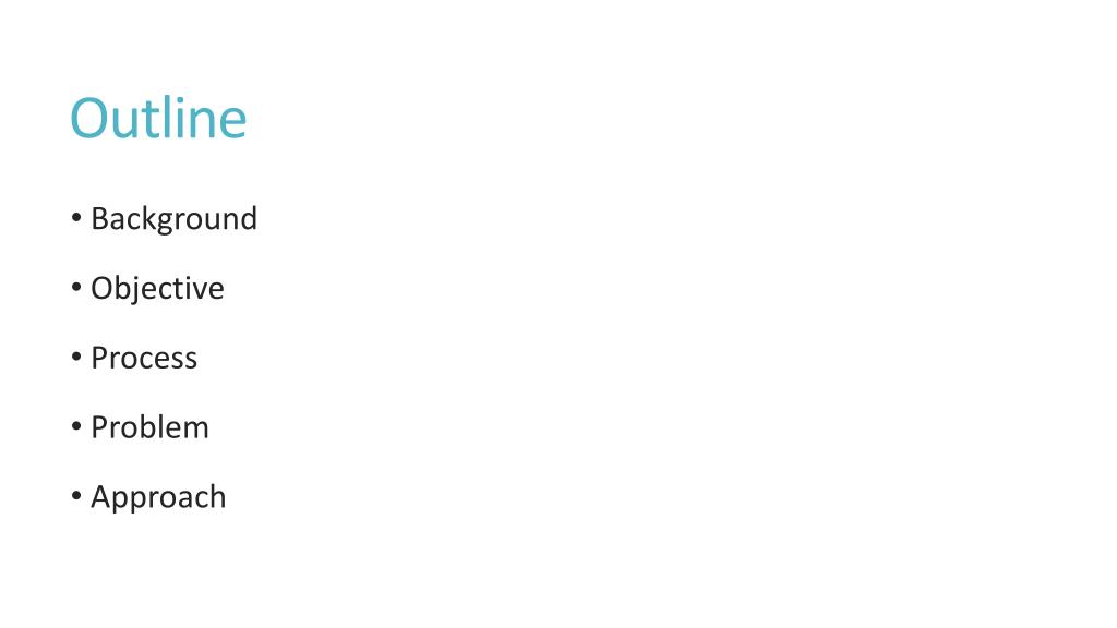 Outline • Background • Objective • Process • Problem • Approach