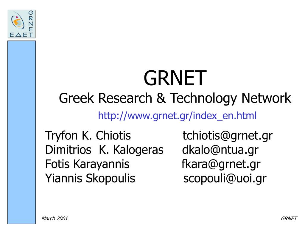 GR NET Greek Research & Technology Network http://www.grnet.gr/index_en.html. Tryfon K. Chiotis tchiotis@grnet.gr Dimitrios K. Kalogeras dkalo@ntua.gr Fotis Karayannis fkara@grnet.gr Yiannis Skopoulis scopouli@uoi.gr. GRNET.