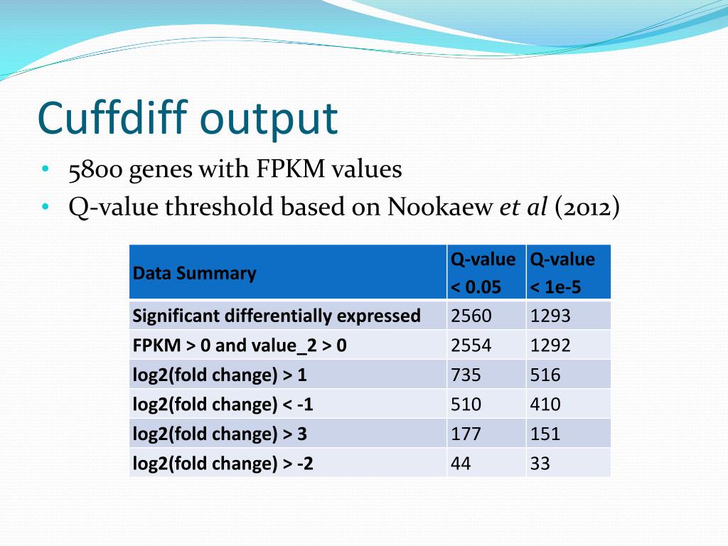 Cuffdiff output 5800 genes with FPKM values Q-value threshold based on Nookaewet al (2012)
