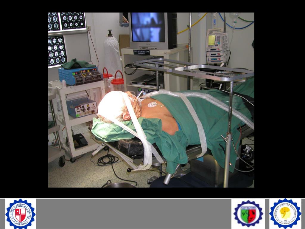 Case • Day 4 post ictus (4am) • OR • Plan • L frontal craniotomy, endoscopic evacuation of hematoma with intraparenchymal ICP monitor probe insertion