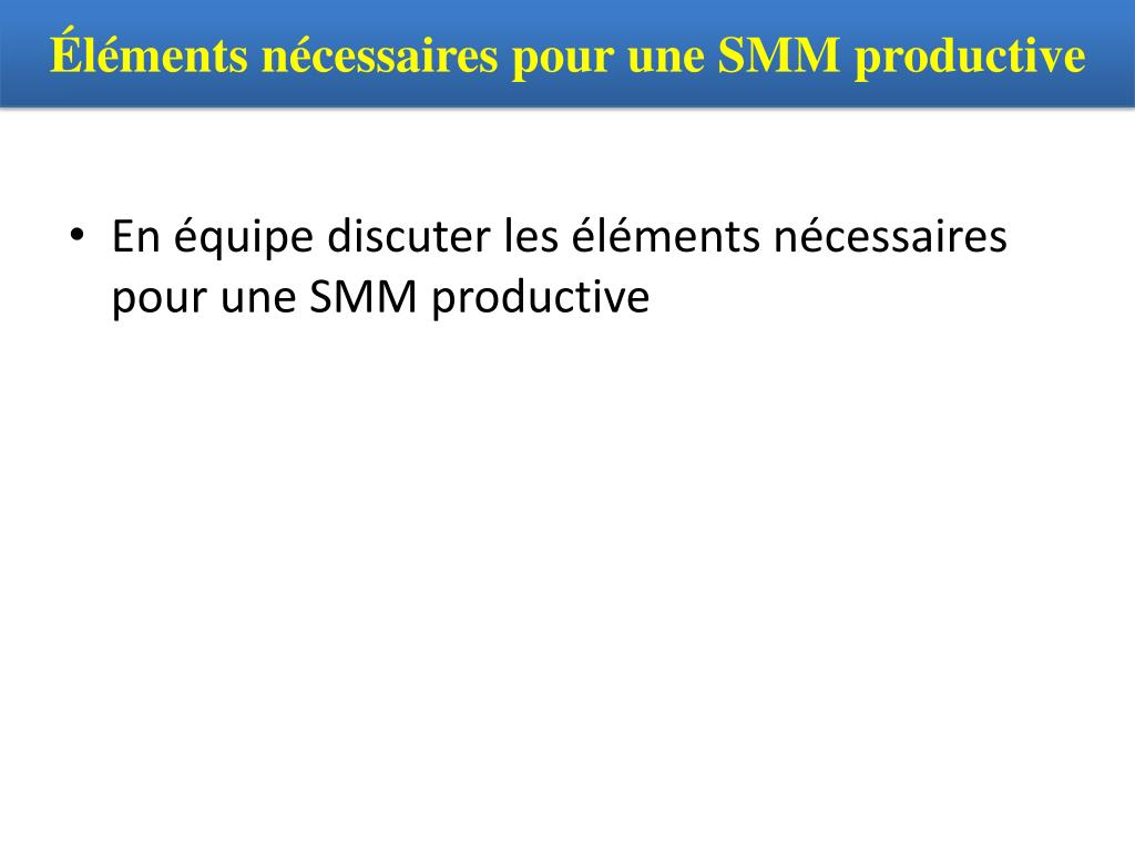 Éléments nécessaires pour une SMM productive • En équipe discuter les éléments nécessaires pour une SMM productive