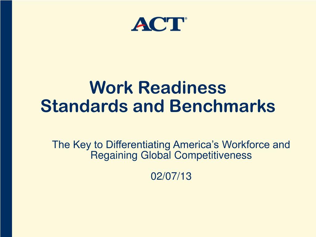Work Readiness Standards and Benchmarks The Key to Differentiating America’s Workforce and Regaining Global Competitiveness 02/07/13
