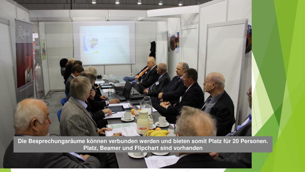 Die Besprechungsräume können verbunden werden und bieten somit Platz für 20 Personen. Platz, Beamer und Flipchart sind vorhanden