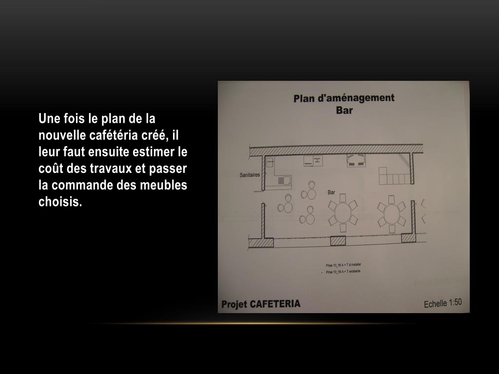 Une fois le plan de la nouvelle cafétéria créé, il leur faut ensuite estimer le coût des travaux et passer la commande des meubles choisis.