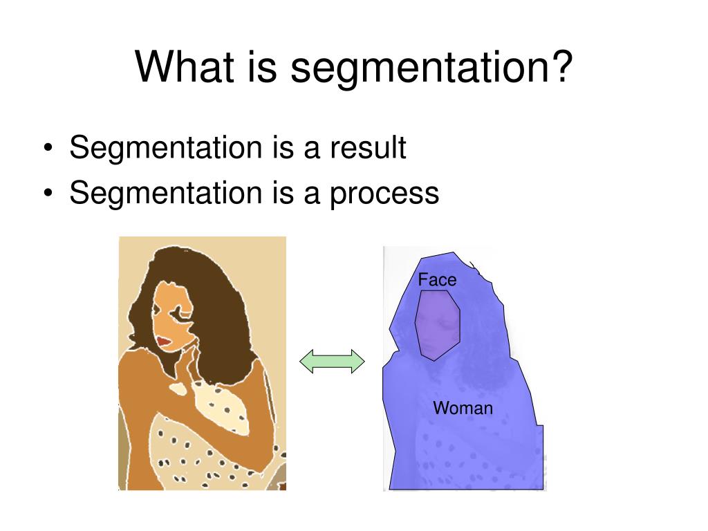 Face Woman What is segmentation? • Segmentation is a result • Segmentation is a process