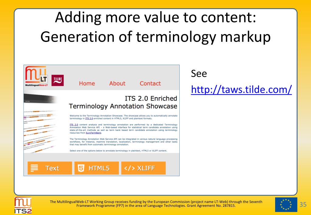 Adding more value to content: Generation of terminology markup See http://taws.tilde.com/