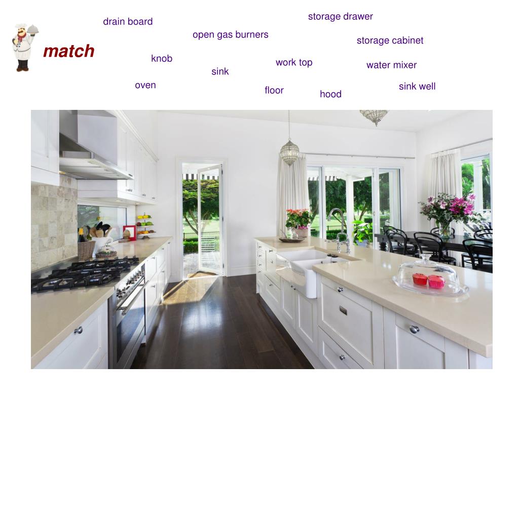 storage drawer drain board open gas burners storage cabinet match knob work top water mixer sink oven sink well floor hood