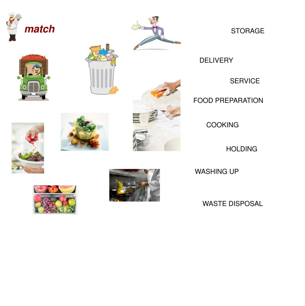 match STORAGE DELIVERY SERVICE FOOD PREPARATION COOKING HOLDING WASHING UP WASTE DISPOSAL