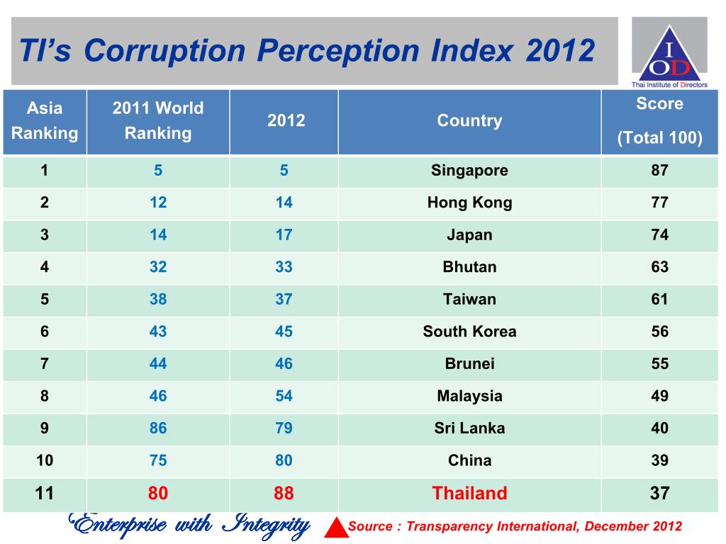 TI’s Corruption Perception Index 2012 Source : Transparency International, December 2012