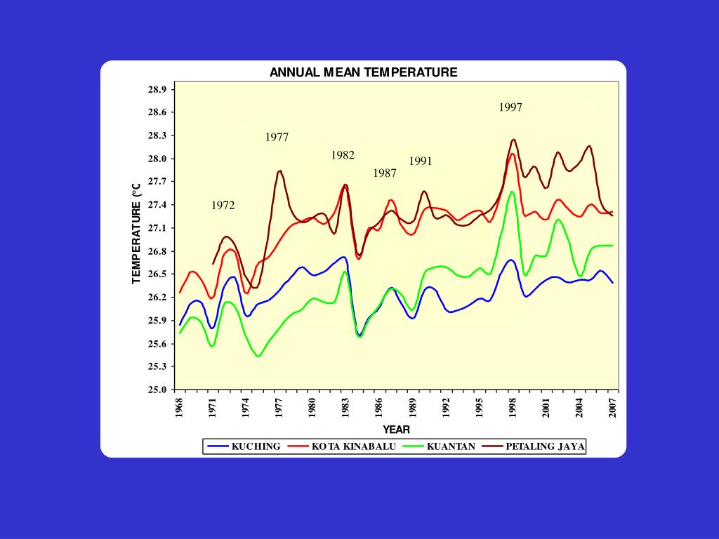 WEST MALAYSIA (MEAN TEMPERATURE) BUTTERWORTH KOTA BARU PETALING JAYA KUANTAN