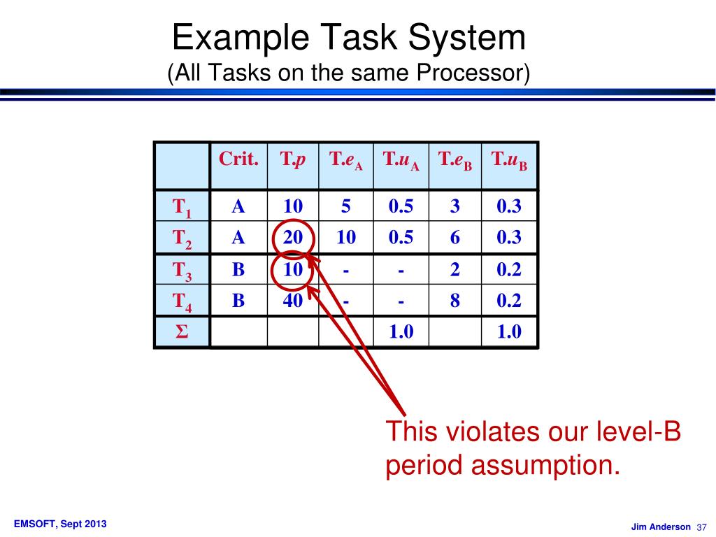 Example Task System(All Tasks on the same Processor) This violates our level-B period assumption.